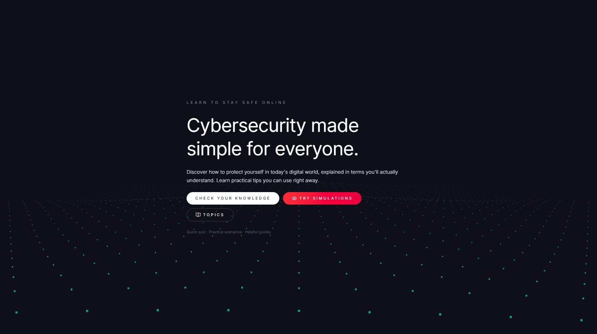 A practical security education site teaching fundamentals through 8 security topics, interactive simulations, and knowledge tests to help build good security habits against modern threats like deepfakes and AI impersonation.